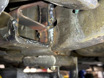 A common point of failure. This requires a section of the outer sill being removed, the jacking point being repositioned to its original place and an A frame welded above it to add strength. The outer sill is then welded back in place, epoxy primed, spray sealed and coloured to give the factory look.